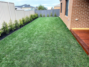 – is a perennial cool season bunch type of grass. With its self-repairing rhizome root system, it fills in bare spots in a thinning lawn and minimises overseeding. It is dark green in colour and soft to walk areas, kids to play on, or dogs. Fescue has been developed as a beautiful grass with all the features of the EasiCare with the added advantage of producing rhizomes. These rhizomes send shoots up through the lawn whilst establishing independent root systems for new plants, thus enabling self-repair for dry or hard worn patches.