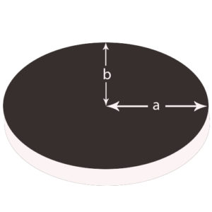 Area = Major Radius (a) x Minor Radius (b) x 3.14 Example – If Major Radius (a) is 5 metres and Minor Radius (b) is 2 metres: 5m x 2m = 10m. 10m x 3.14 = 31.4 square metres.