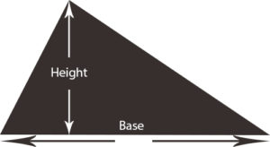 Measure in metres the BASE and HEIGHT of the Triangular area. To calculate, multiply 0.50 by the base and then by the height. Example: Base 40 metres & height 25 metres – 0.50 x 40 x 25 = 500 square metres. Different Widths: Measure metres by firstly measuring the length of the longest axis across the area. Every two metres along the length line measure the width of the area at right angles to the length line. Total all widths, divide by number of width section and multiply by length. Example: Length 9 metres: width (1) 3 metres: width (2) 5 metres: width (3) 4 metres. 3+5+4=12 divide by 3 = 4 x 9 = 36 square metres.